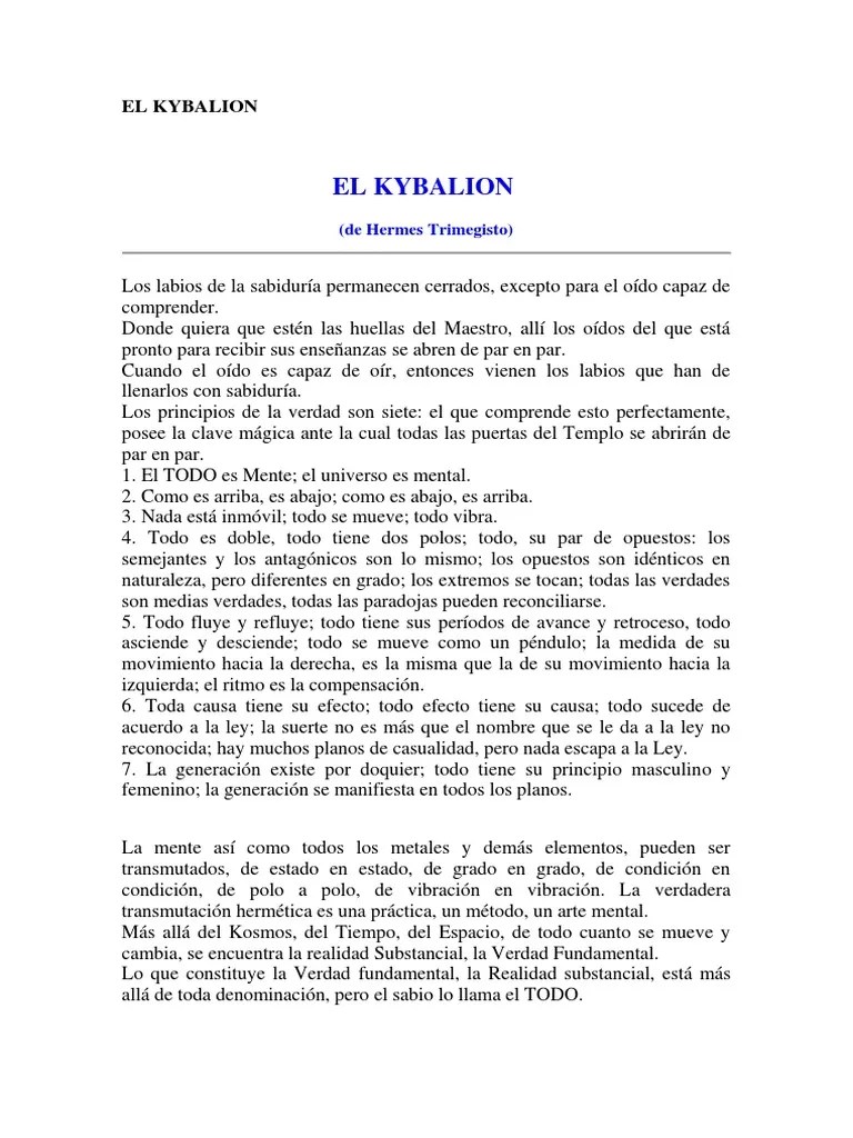 El Kybalion Pdf Causalidad Universo Prueba Gratuita De 30